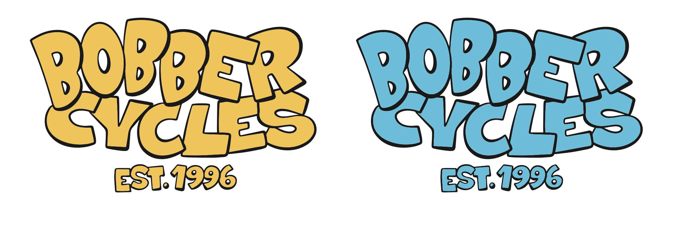 A big bad wolf with a helmet and a piston in his mouth. Cool right? Color palette’s pretty clean, yellow with white and “medium” light grey. We put a Bobber Cycles logo on the front of the helmet as well.